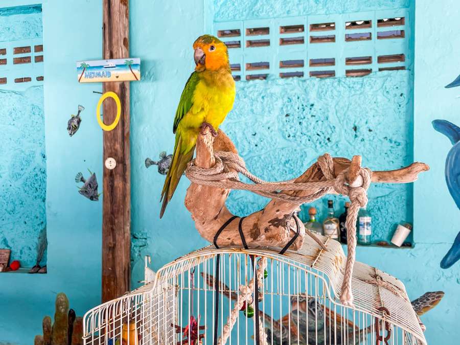 Exclusief voor de Mermaid heeft kapitein Cor en zijn bemanning het enige strandhuis op Klein Curaçao. Met een groot rieten dak, picknickbanken en verfrissende drankjes is het een geweldig schaduwrijk toevluchtsoord tegen de hitte van de zon. De badkamers zijn schoon en goed onderhouden. De Mermaid biedt alle faciliteiten die je nodig hebt voor een fijne dag op het strand.