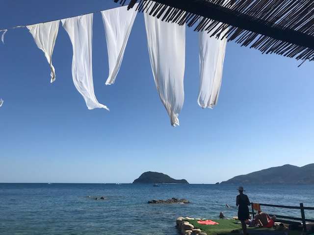 Mijn meest memorabele momenten van deze vakantie zijn toch wel de uren op Cameo-island, bereikbaar via een houten loopbrug. Het eilandje, niet veel meer dan een begroeid rotsblok heeft een superromantisch mini-strandje waar je heerlijk kunt zwemmen en luieren. De witte doeken die hoog boven je wapperen in de bries hadden een magische uitwerking op mij, ik werd helemaal zen.
