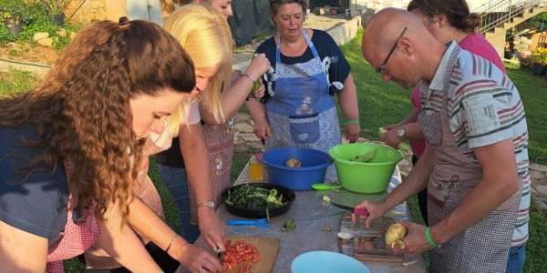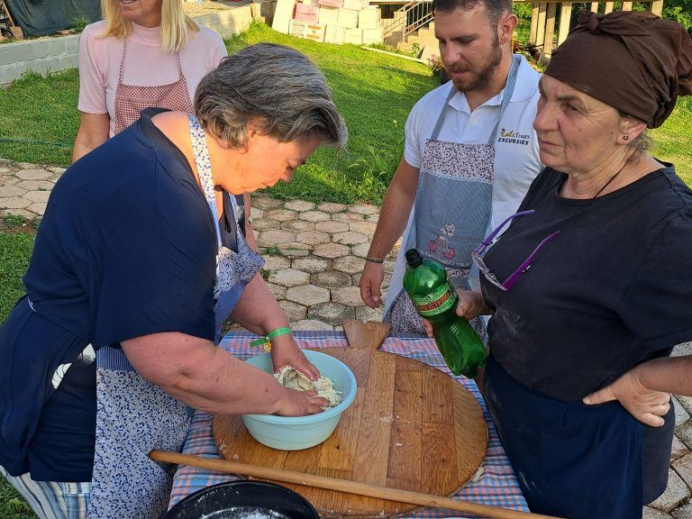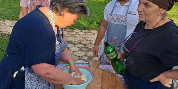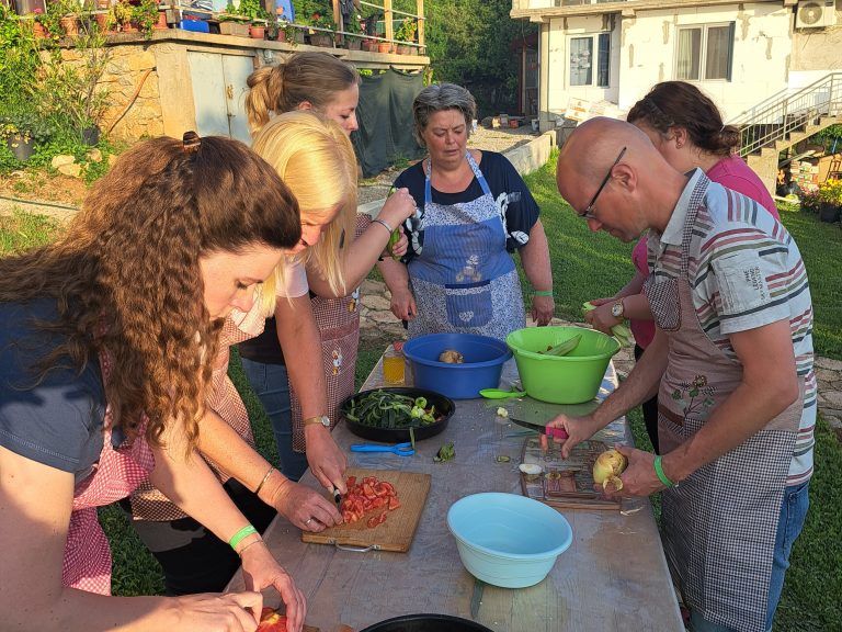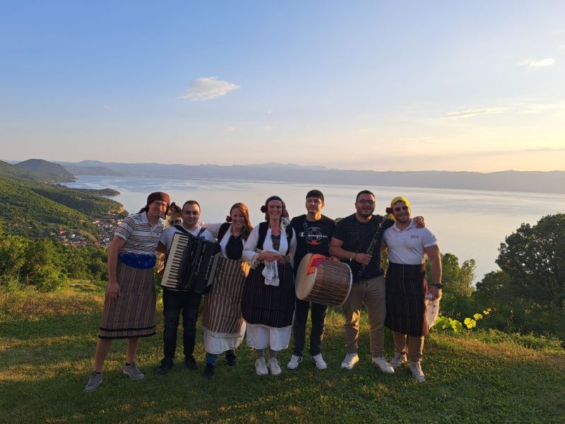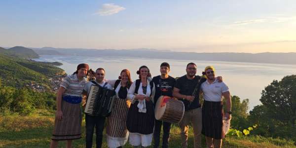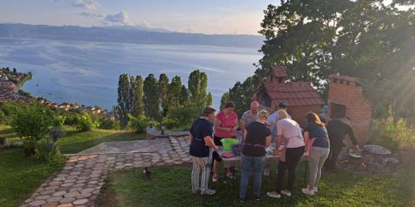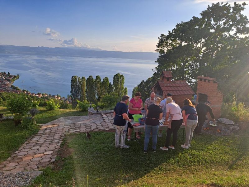 hartelijk worden ontvangen door een familie die een perfect uitzicht heeft over het meer en de bergen. Samen met deze familie gaan we op een culinaire ontdekkingsreis door de rijke smaken van de Macedonische keuken. We slaan de handen ineen en bereiden gezamenlijk de lunch, waarbij we ons laten leiden door traditionele recepten en technieken. Het zelfgemaakte brood, de smaakvolle goulash en de verrukkelijke bladerdeeghapjes krijgen een speciale touch door ze te bakken in de houtkacheloven.Terwijl de heerlijke geuren zich verspreiden, proeven we alvast van lokale lekkernijen en genieten we van de gastvrijheid om ons heen. Voor wie dat wil, is er zelfs de mogelijkheid om de traditionele klederdracht te dragen, wat de ervaring nog authentieker maakt. Na de maaltijd worden we getrakteerd op traditionele Noord-Macedonische muziek, die de essentie van het land weerspiegelt. Met volksdansen en de vrolijke klanken van een Macedonisch bandje met trommels en harmonica maken we deze excursie compleet.