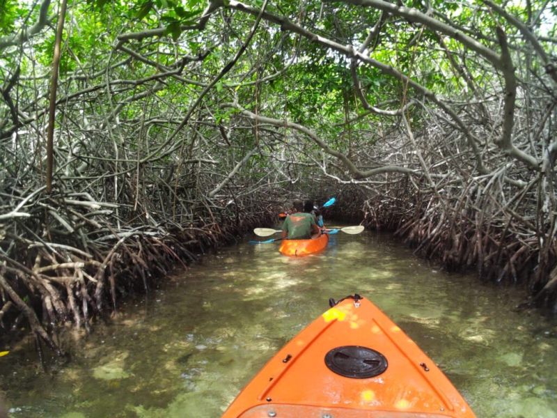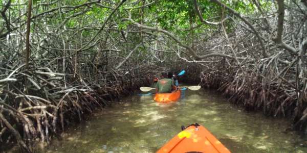 Verken de ruige en ongerepte oostkust van Bonaire op een elektrische mountainbike. Onder begeleiding van een gids fiets je langs indrukwekkende landschappen en bijzondere plekken zoals de ‘Longest Tree’. Dankzij de e-bikes is de tocht ook goed te doen als je niet vaak fietst – en onderweg is er natuurlijk tijd genoeg om van de omgeving te genieten.Mangrove Kajaktour & Snorkelen