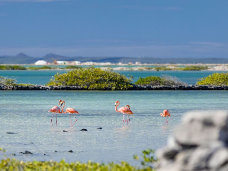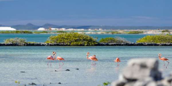 Het strand ligt perfect: op nog geen kilometer van Kralendijk en zo’n zes kilometer van Flamingo Airport. Direct voor je ligt het idyllische Klein Bonaire, een klein paradijsje op zichzelf. Fun fact: de naam ‘Chogogo’ komt van het typische geluid van de Caribische flamingo — je weet wel, dat nasale ‘cho-go-go’ geluid. De flamingo is het icoon van Bonaire en overal op het eiland terug te vinden.