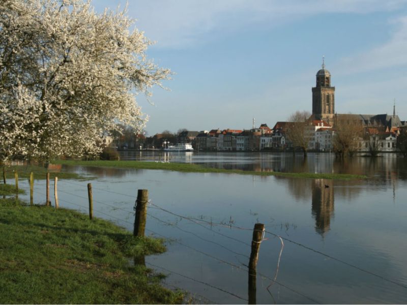 De middeleeuwse Hanzesteden Zwolle en Deventer liggen beiden aan de IJssel. Niet voor niets waren deze steden vroeger belangrijk voor de handel. Bezoek in Zwolle de oude Sassenpoort, beklim de Peperbus en sla zeker een bezoekje aan Waanders in de Broerenkerk niet over. Haal een ijsje bij één van de beste ijssalons van Nederland, Salute, en loop langs de oude gracht. Sluit de dag af op één van de vele gezellige terrassen.Deventer is de stad van het Dickens Festijn en de Boekenmarkt. Breng een bezoek aan de Grote of Lebuïnuskerk met zijn imposante toren, het prachtige historische stadhuiscomplex en het Bergkwartier. Ook in deze stad vind je vele leuke winkeltjes, kleine lunchrooms en leuke terrassen.