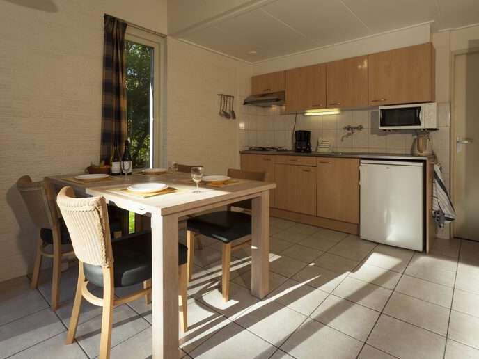 De bungalow is ruim en verzorgd ingericht en beschikt over een keuken met gasstel, magnetron, koelvriescombinatie en koffiezetapparaat. Verder is er een televisie, centrale verwarming en zijn er tuinmeubels op het terras aanwezig. De badkamer is voorzien van een douche en wastafel, het toilet is apart. De bungalow heeft twee slaapkamers. Tevens is er ruimte voor 1 auto bij de bungalow.